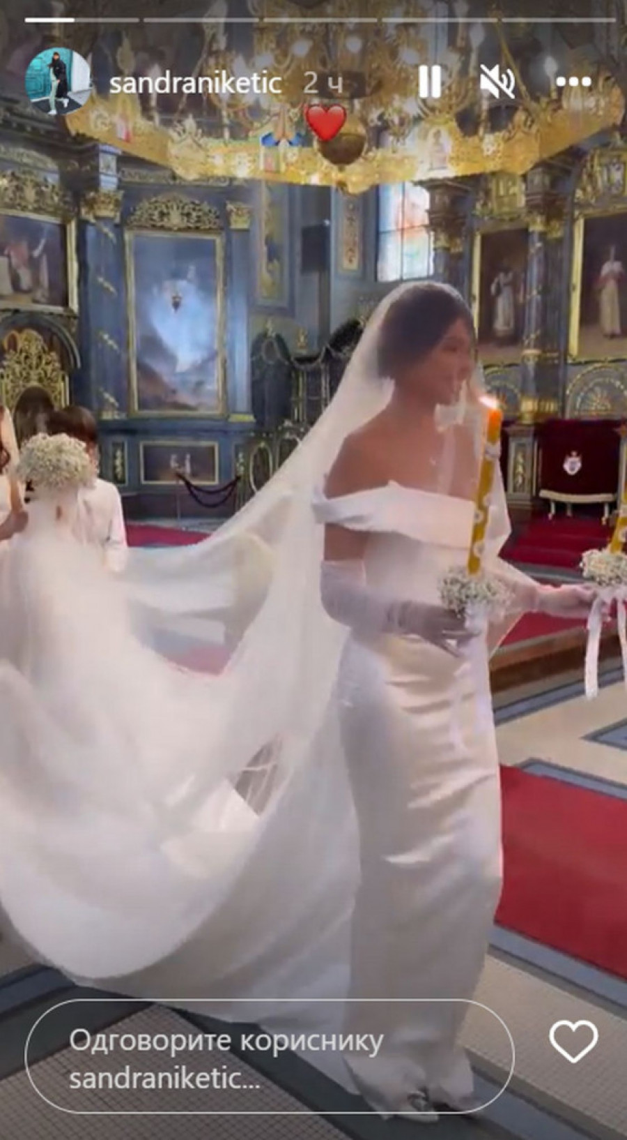 Crkveno venčanje se odigralo u Sabornoj crkvi u Beogradu u društvu porodice i prijatelja. Mina je blistala u satenskoj venčanici golih ramena koja je savršeno isticala njenu manekensku figuru. Dugačak šlep i veo upotpunjavalii su raskošnu kreaciju, a rukavice su dodale notu ekstravagantnosti.