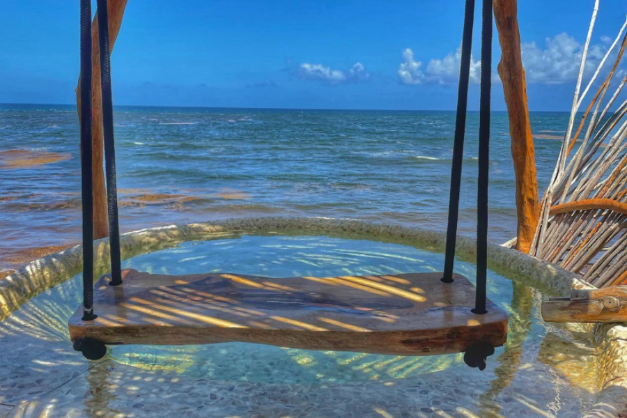 Par je odlučio da iskoristi sve čari Tuluma, pa je umesto u hotelu odseo u moderno opremljenoj sojenici od bambusa, na samoj obali.