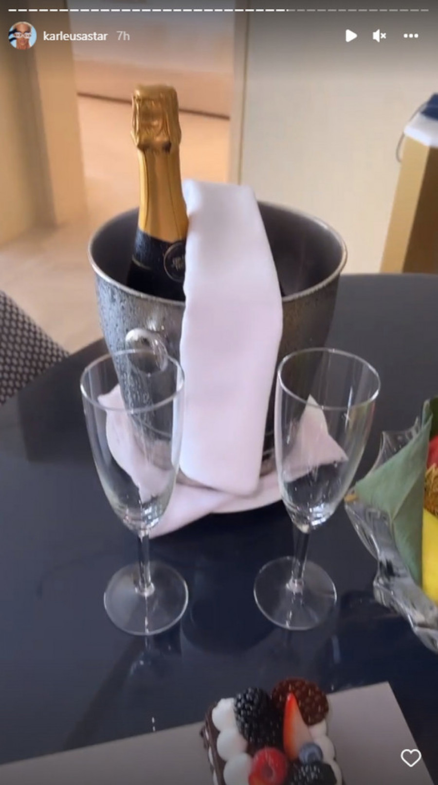 Razume se dočekao ih je šampanjac, jer kako da rođendan prođe bez malo mehurića. Ni koktel dobrodošlice nije izostao, kao i jagode i torta u obliku slova “J”.