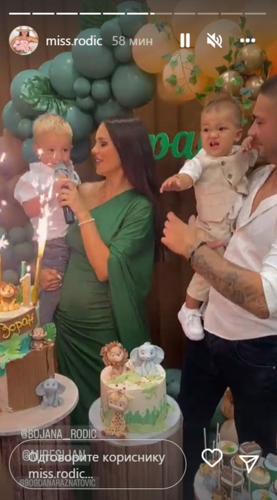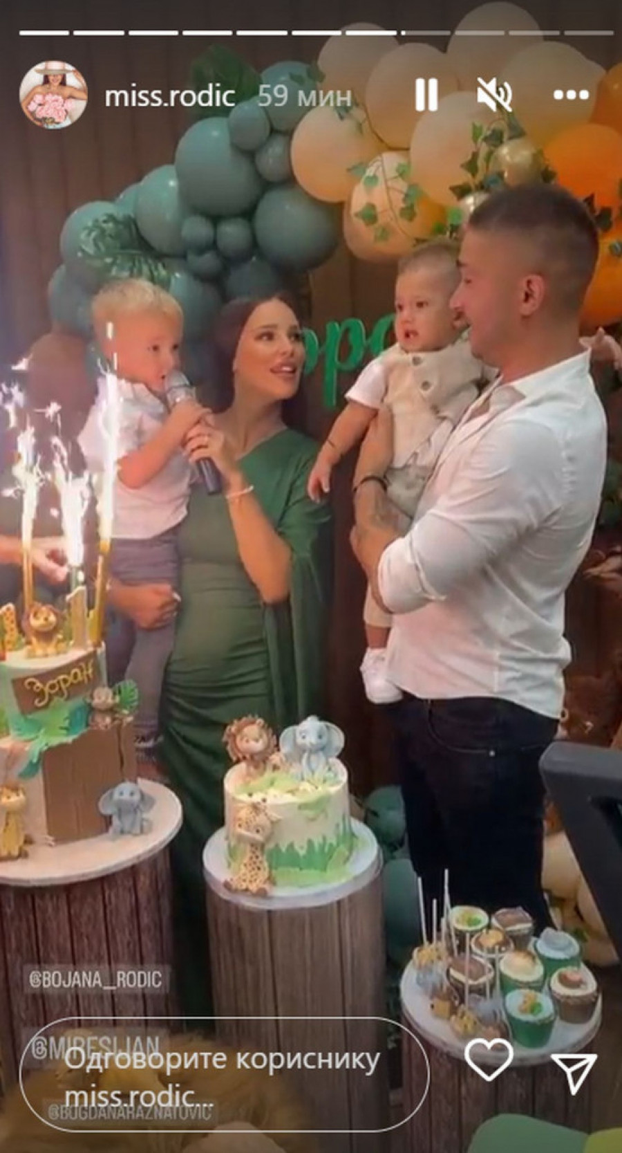 Prelepa mama je blistala u zelenoj haljini, držeći u naručju malog Željka koji je uzeo mikrofon i otpevao bratu Zoranu rođendansku pesmu, čime je oduševio sve prisutne.