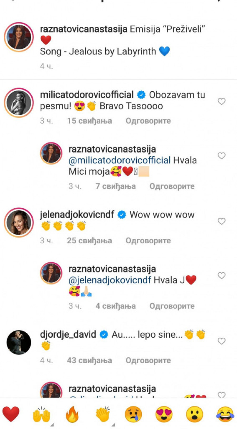A ko je još ostao bez reči na Anastasijino pevanje pogledajte i sami u printscreen-u koji je napravljen dok je Anastasijin video još bio vidljiv na Instagramu.