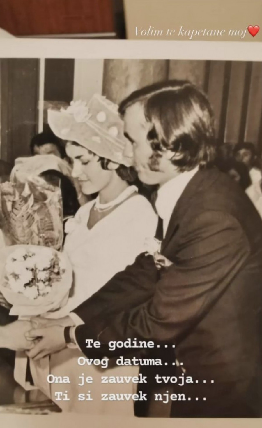 Ovog puta porodični album otvorila je na dan kada su njeni roditelji izgovorili sudbonosno „da“. Uz nostalgičnu crno-belu fotografiju koju je objavila na Insta storiju napisala je: „Te godine, ovog datuma... Ona je zauvek tvoja. Ti si zauvek njen. Volim te, kapetane moj.” I ostavila srce.