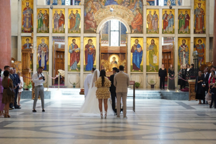 Posle čina venčanja pao je i prvi poljubac, a na poklon od starešine Saborne crkve oca Petra mladenci su dobili ikonu sv. Arhangela Mihajla, njihove krsne slave.