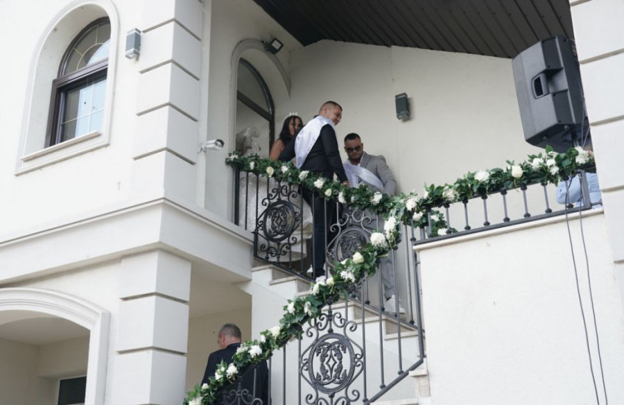 Mladenci su zaigrali sa trubačima, a onda su se uputili u restoran gde je obavljeno građansko venčanje i gde će slaviti do kasno u noć.