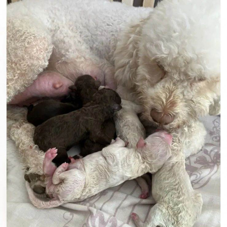"Dima je postao tata", glasi vest na Vojinovom Instagramu, a slika srećne "mame" i štenaca je prelepa.