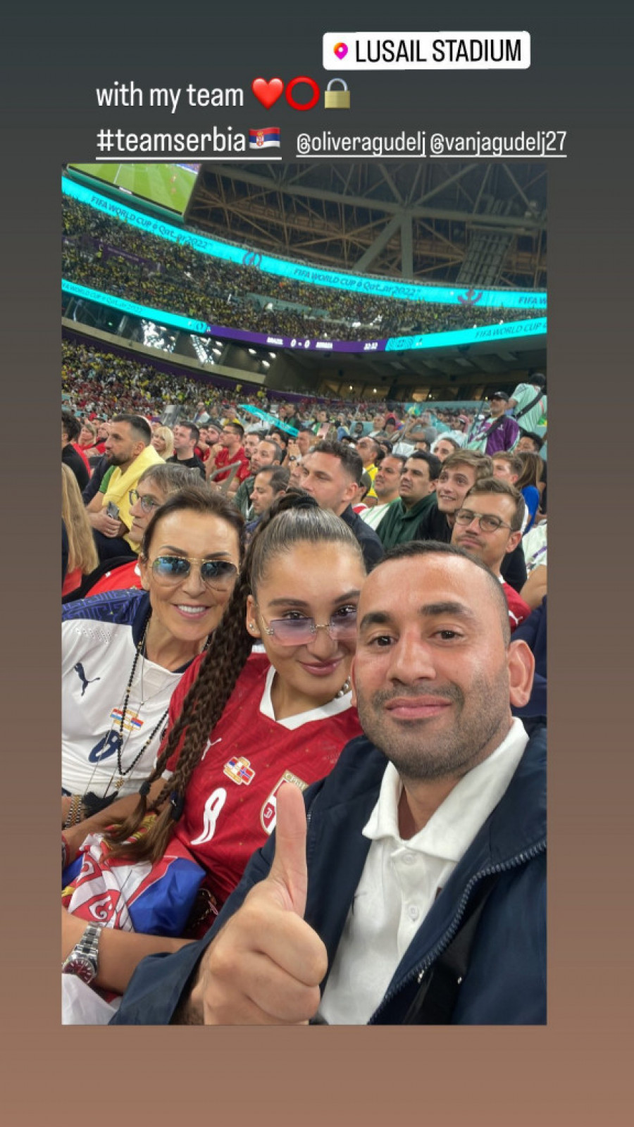 Duško je u Katar došao sam, ali je na iznenađenje svih sedeo tik iza porodice Gudelj. Izabranik Cecine ćerke Anastasije Nemanja Gudelj utakmicu je igrao znajući da su mu sa tribina podrška najmiliji: otac Nebojša, majka Olivera i sestra Vanja.