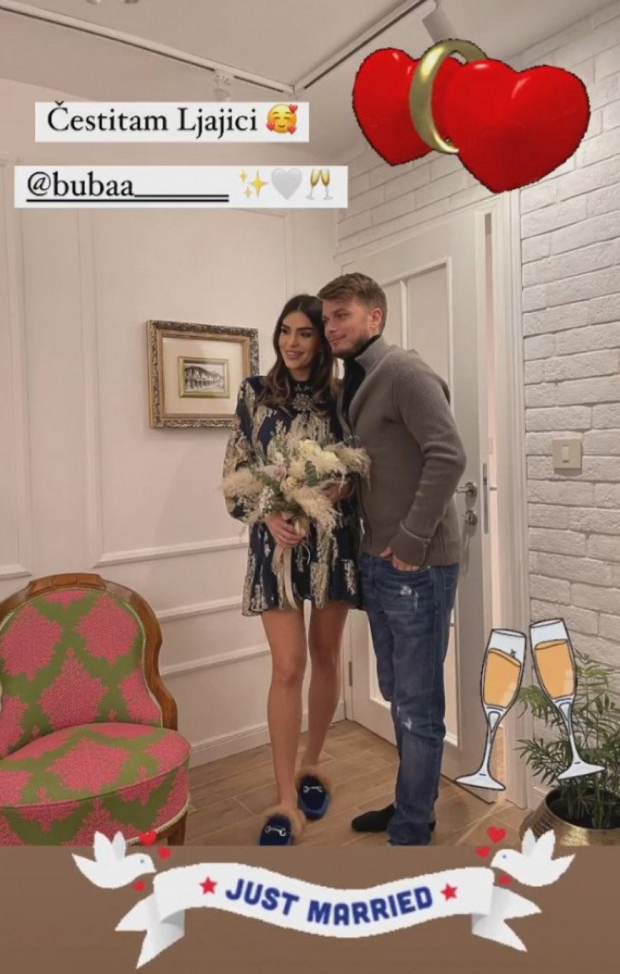 Adem Ljajić oduvek je čuvao svoju intimu, a za venčanje se saznalo zahvaljujući Ani Rajković, supruzi golmana Predraga Rajkovića, koja im je na Instagramu čestitala sklapanje braka.