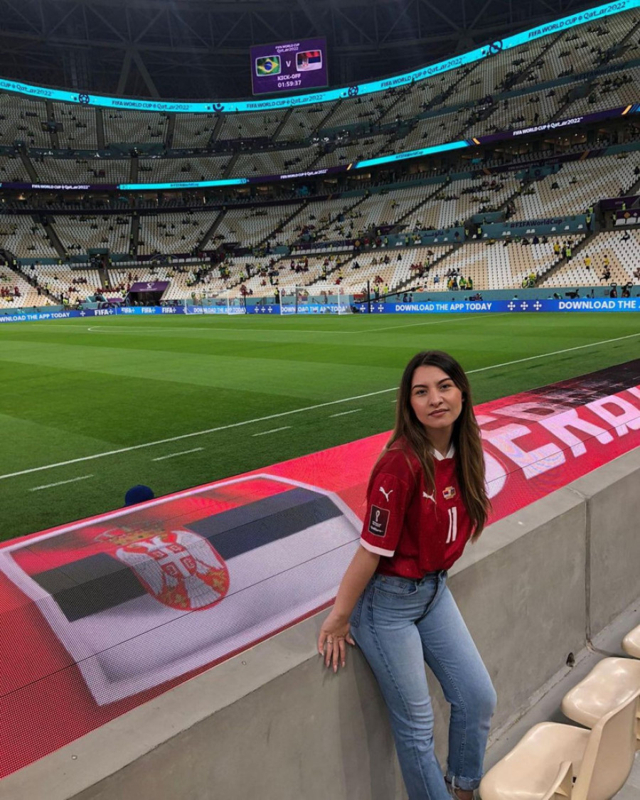 U maloj srpskoj koloniji u Kataru koja bodri naše fudbalere na Svetskom prvenstvu našla se i sestra Luke Jovića. Obukla je dres reprezentacije i pozirala ispred stadiona u Dohi, čime je pratioce na Instagramu obavestila gde trenutno boravi.