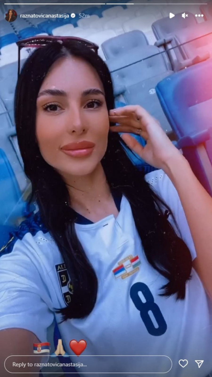 Važan dan u Kataru bio je i za Anastasiju Ražnatović koja je došla da bodri svog dragog Nemanju Gudelja, a za ovu priliku imala je adekvatan stajling, dres reprezentacije.