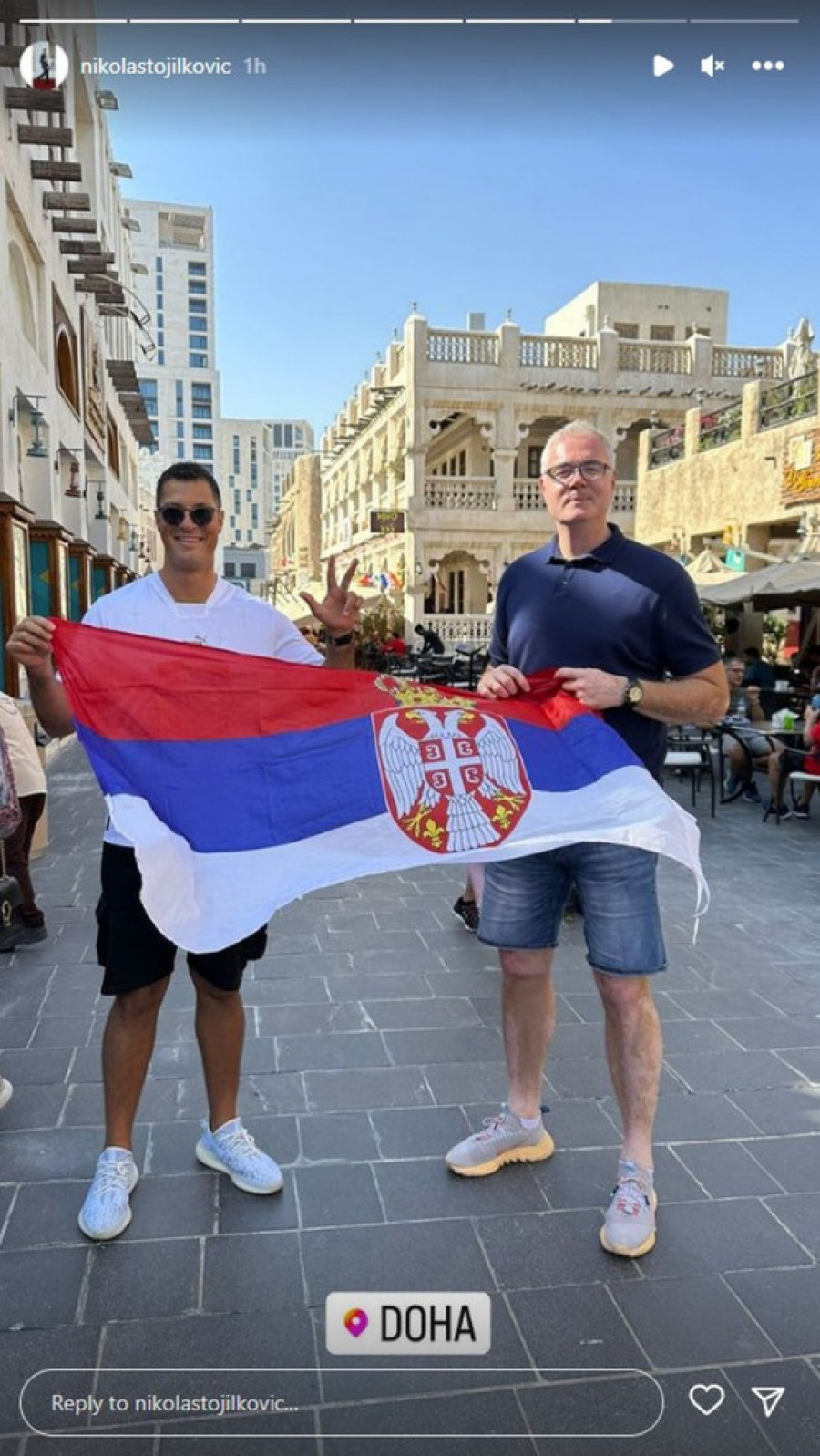 Nekadašnji košarkaški as Dejan Tomašević za „orlove“ navija u društvu supruga Danice Karić, Nikole Stojiljkovića, koji je podelio njihovu fotografiju sa zastavom Srbije.