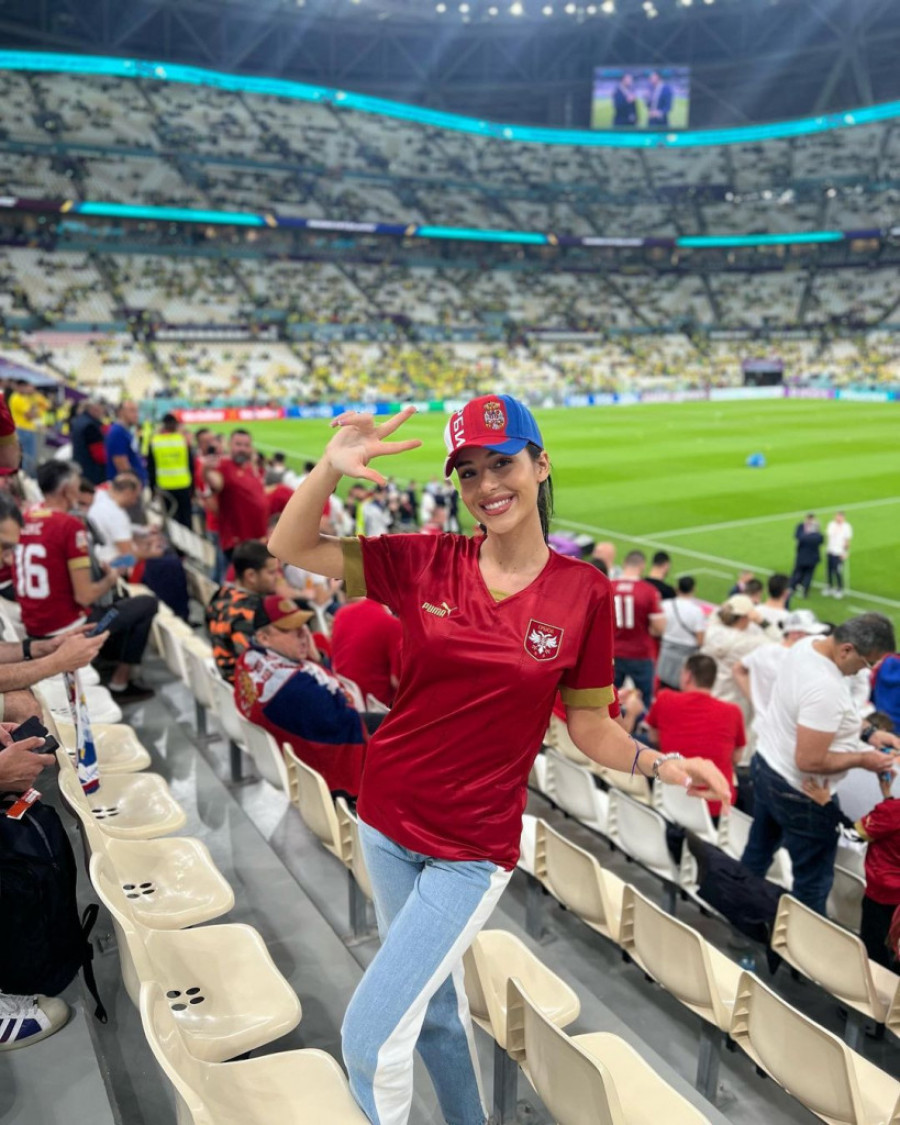Anastasija Ražnatović bodrila je sinoć svog dečka Nemanju Gudelja na stadionu Lusail