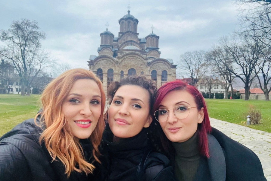 Popularni novosadski trio juče je obišao Gračanicu, jedan od naših najvažnijih srednjovekovnih manastira. Nataša Mihajlović i Nevena i Jelena Buča snimale su emisiju u Prištini i odlučile da obiđu zadužbinu kralja Milutina iz 14. veka. Nisu se, kažu, uplašile bilo čega, već su odmah prihvatile poziv. Zapalile su sveće u crkvi i čule posebnu priču o tom svetom mestu.