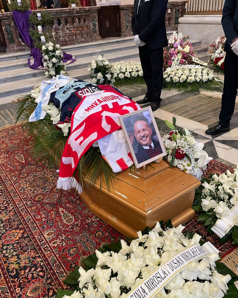 Na jednom vencu pored kovčega legendarnog fudbalera piše Violante, što je ime njegove mezimice, jednogodišnje unuke koju mu je podarila mlađa ćerka. Na drugom su ispisana imena sve šestoro dece: Viktorija, Virdžinija, Miroslav, Dušan, Nikolas i Marko.
