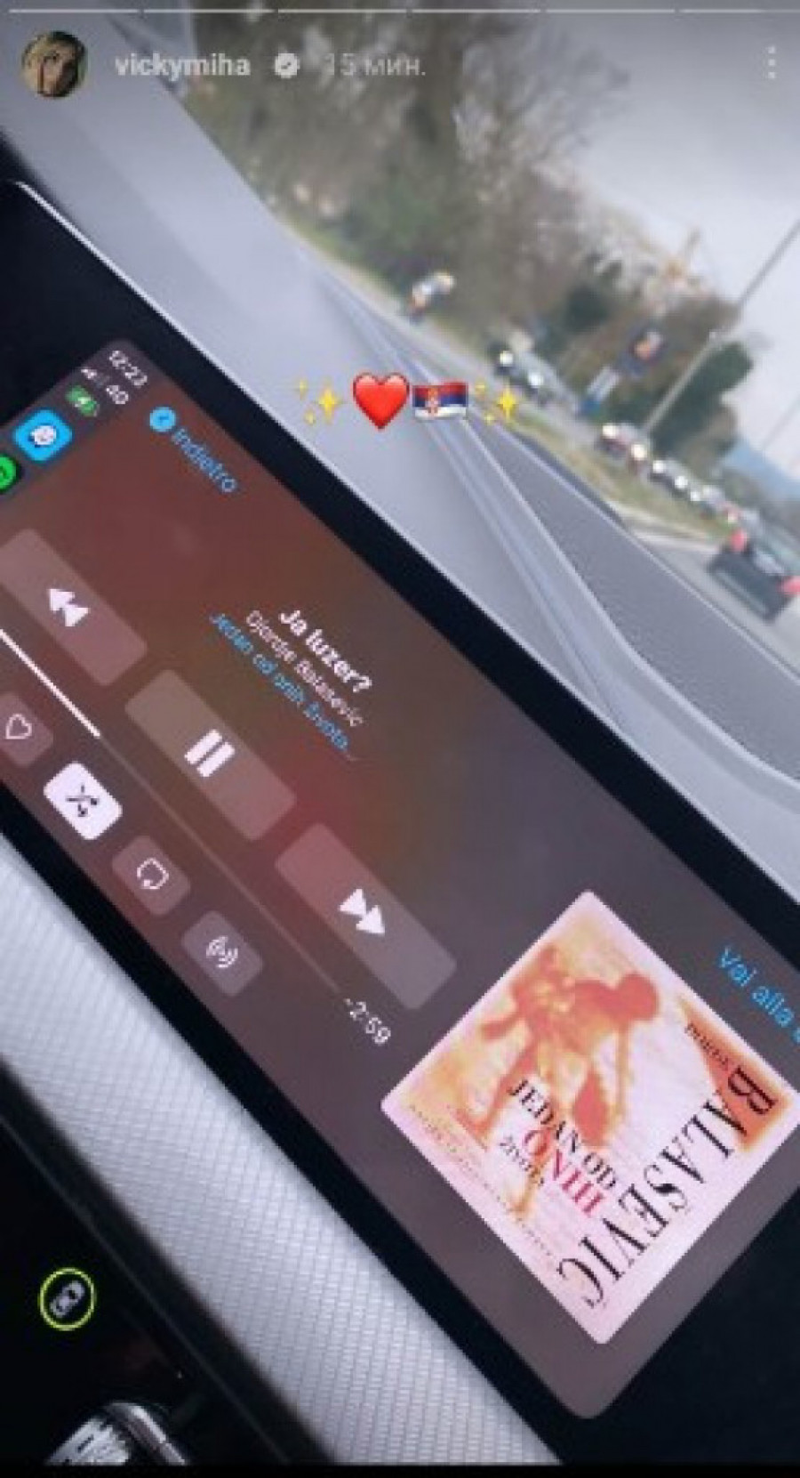 Kako se može videti na njenom storiju, Viktorija je snimila atmosferu iz vozila u kome je išla pesma "Ja nisam luzer", a ovo je delić iste: