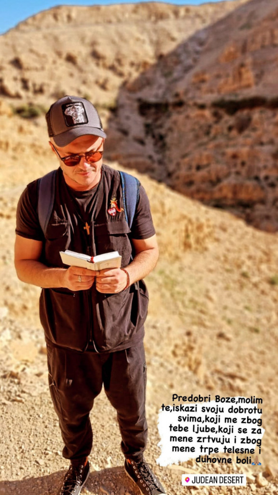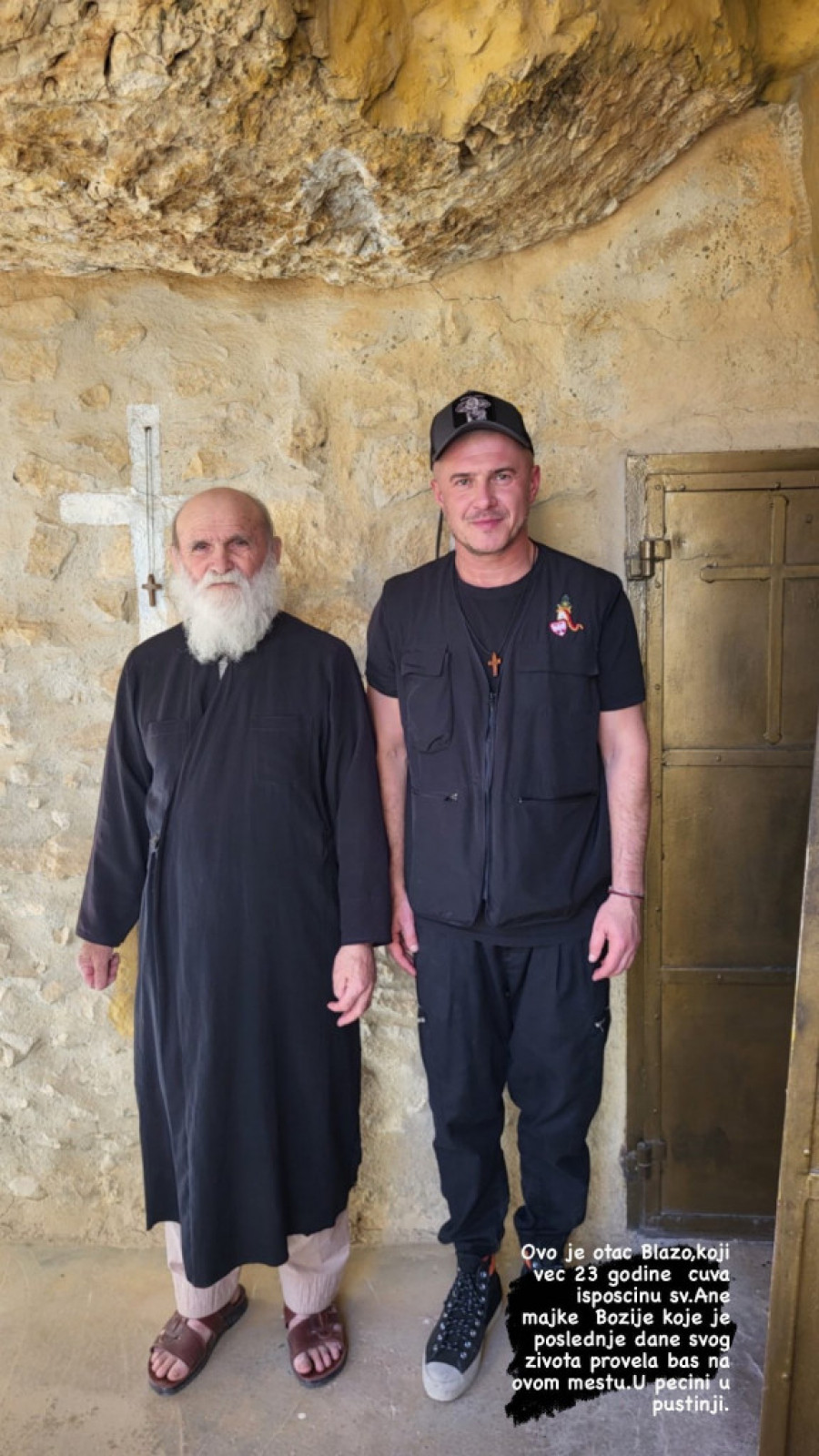 “Ovo je otac Blažo, koji već 23 godine čuva isposnicu svete Ane majke Božije, koja je poslednje dane svog života provela baš na ovom mestu. U pećini, u pustinji,” napisao je uz fotografiju sa hodočašća.