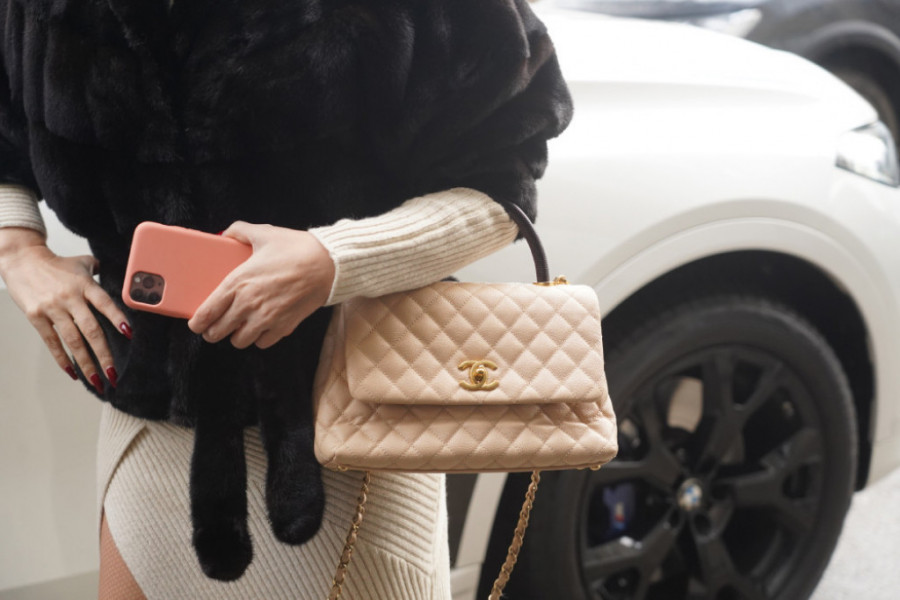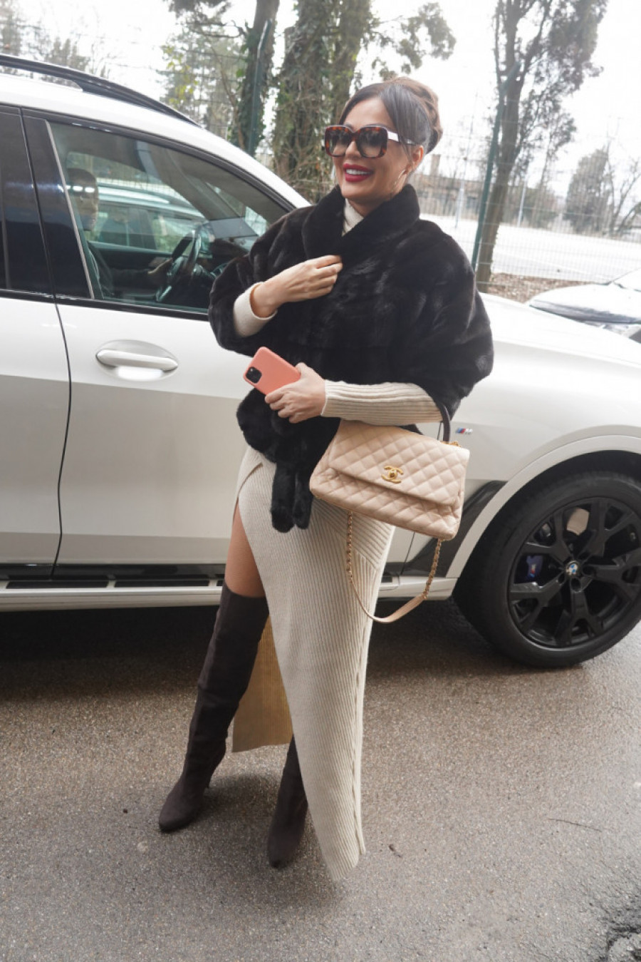 Ispod skupocene bunde videli smo pletenu bež haljinu sa dubokim šlicem, kao i brendiranu tašnu vrednu 4.000 evra.