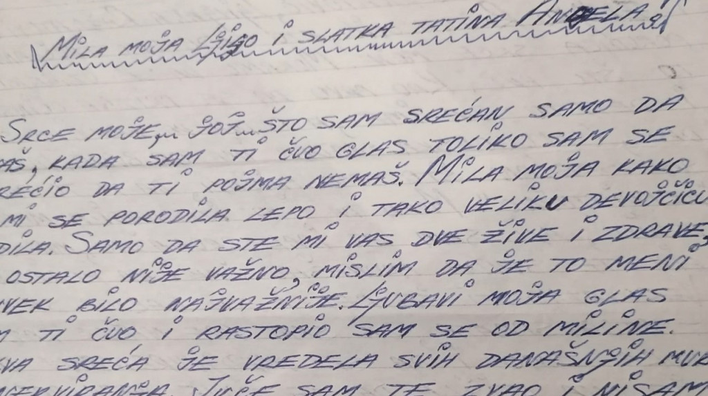 „Srce moje, joj što sam srećan samo da znaš. Kada sam ti čuo glas toliko sam se usrećio, da pojma nemaš. Mila moja, kako si mi se porodila lepo i tako veliku devojčicu rodila. Samo da ste mi vas dve žive i zdrave, a ostalo nije važno. Ljubavi moja, glas sam ti čuo i rastopio se od miline. Takva sreća vredela je svih muka i nerviranja. Juče sam te zvao i nisam mogao nikako da te dobijem, pa sam izludeo. Ali, sada je sve u redu jer se radujem kao lud i trljam ruke od silne radosti.”