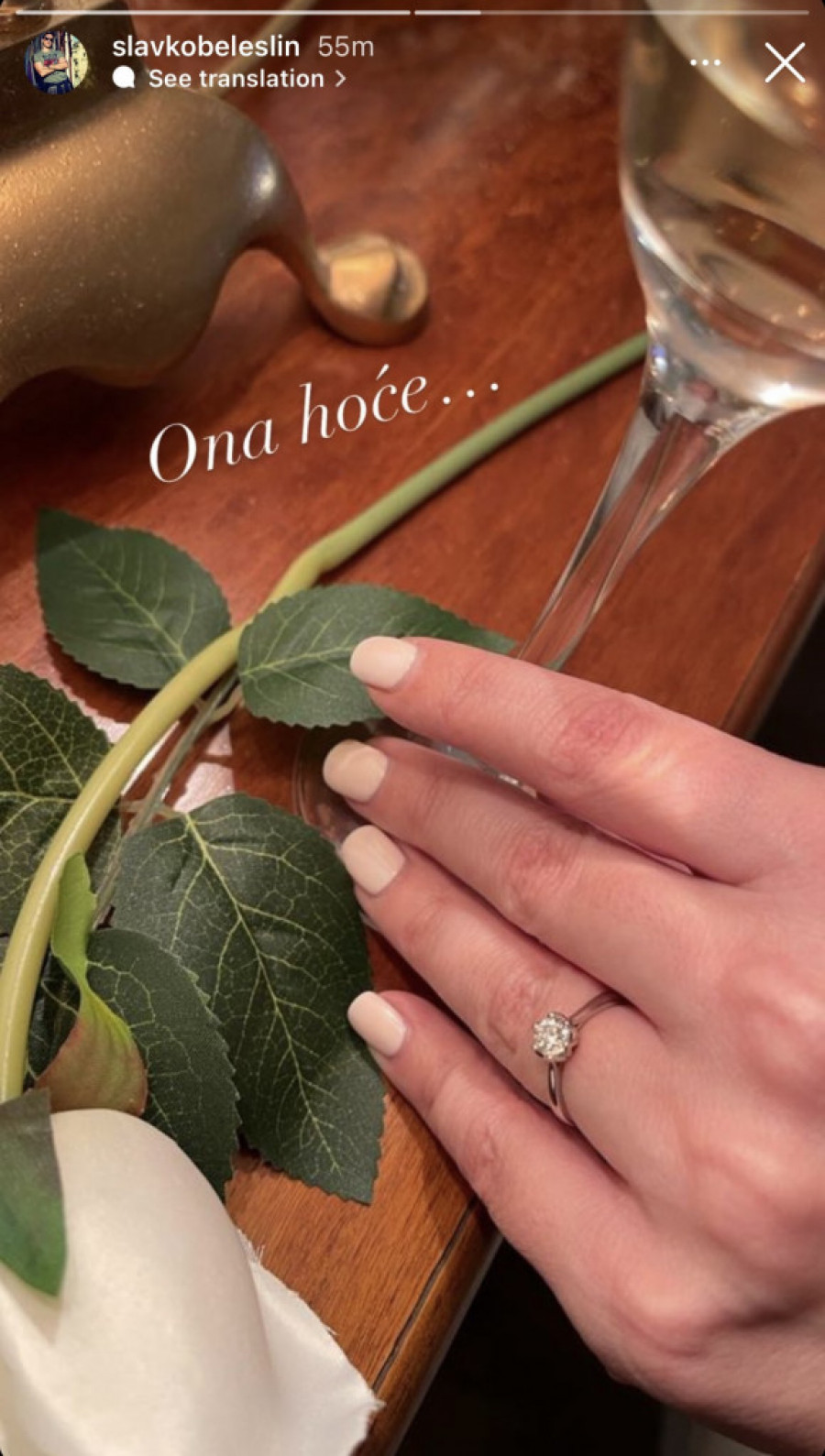 “Ona hoće”, napisao je Slavko Beleslin uz fotografiju na kojoj je na ruci njegove izabranice zablistao verenički prsten, i tako otkrio da je spreman da po drugi put započne bračni staž.