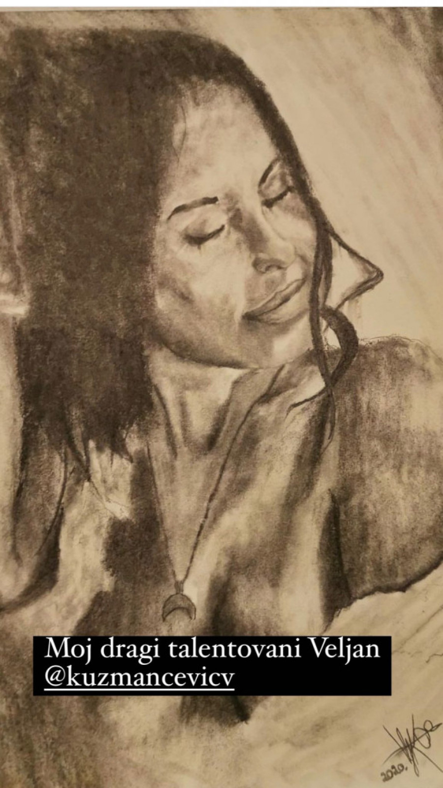 Pored muzike, Veljkova strast je i slikarstvo. Nedavno je uradio Elenin portret, a ona je na Instagramu objavila kako to izgleda i u četiri reči objasnila koliko je zadovoljna: „Moj dragi talentovani Veljan”.