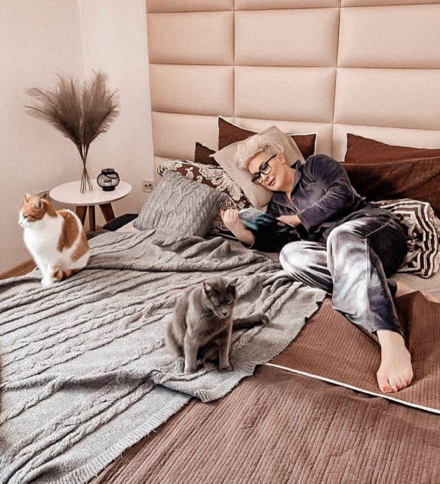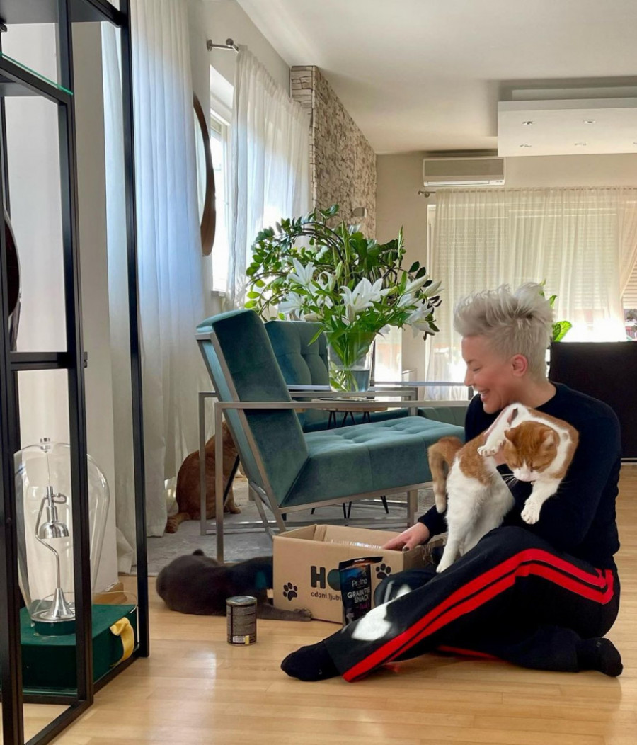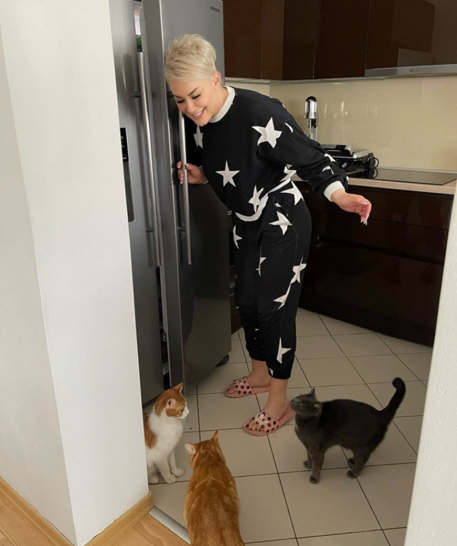 Prostrana kuća ima muzički studio, teretanu, veliku baštu, pa bračni par praktično nema potrebu da bilo gde izlazi. Društvo im prave kućni ljubimci, tri mačke i dva psa.