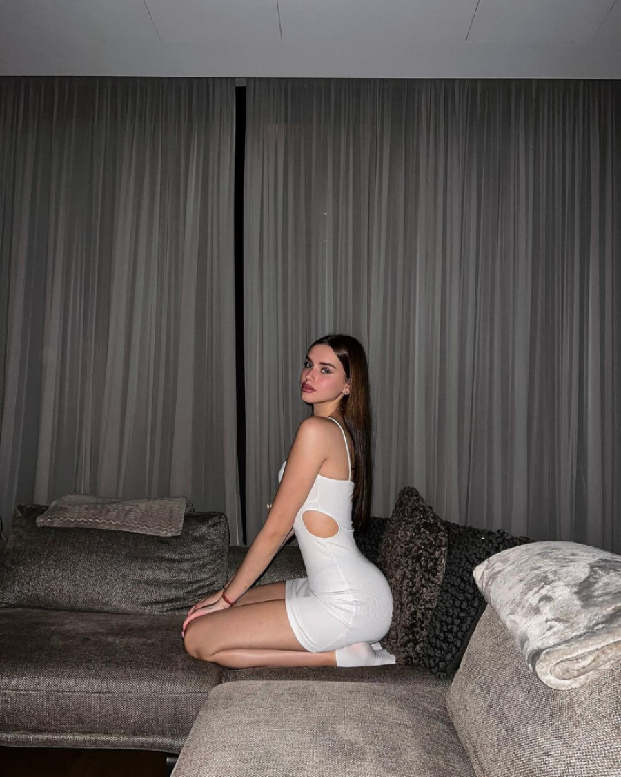 Osim uobičajenih selfija u kupatilskom ogledalu, Čoline ćerke najčešće poziraju u dnevnoj sobi, gde najveći deo prostora zauzima moderna siva garnitura, sa kojom su se odlično uklopile sive zavese na prozorima koji idu duž celog zida.