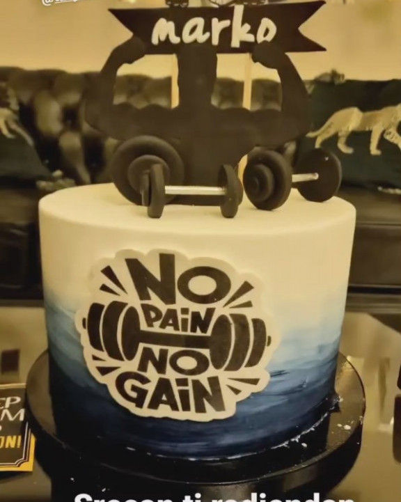 Naime, zgodni Marko vodi zdrav život i svakodnevno vežba, a pošto mu je teretana očigledno velika ljubav, na torti su se našli mišići i tegovi, uz natpis “no pain, no gain”.