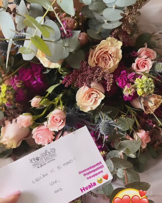 “Srećan ti 8. mart!”, piše na kartici koju zajedno sa Nemanjom potpisuju njegov mlađi brat Dragiša, kao i otac Nebojša Gudelj.