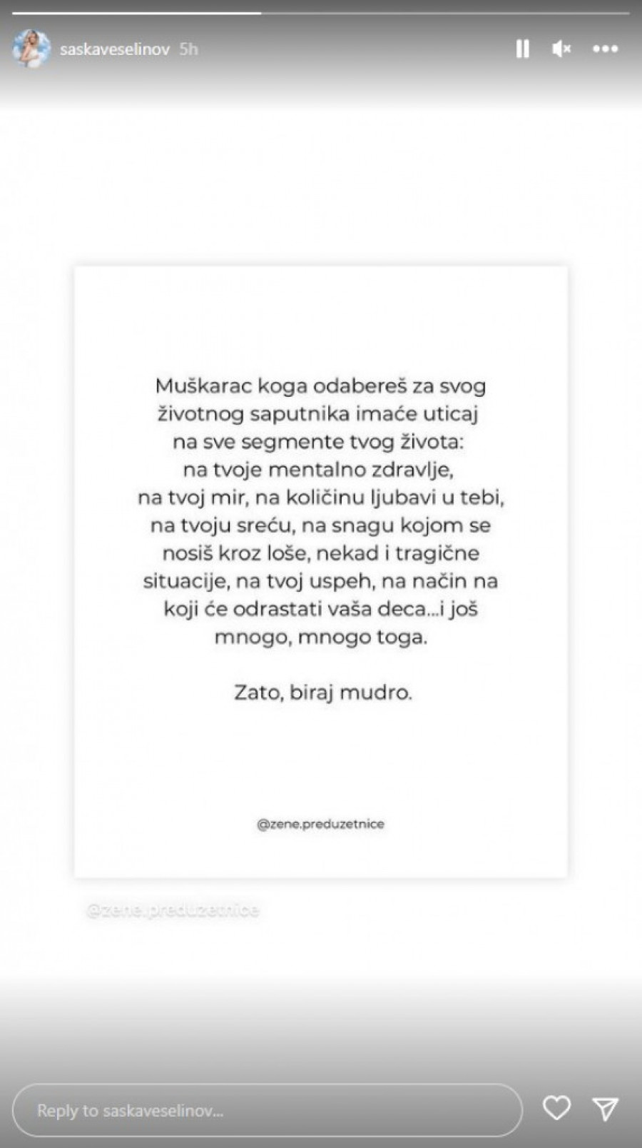 Da je pronašla srodnu dušu Saška je potvrdila i u nedavnoj objavi na Instagramu: