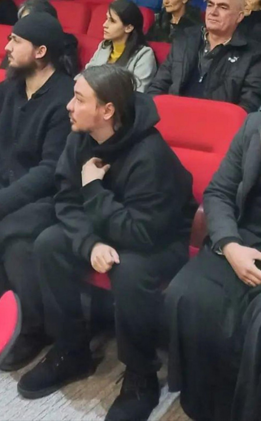 Stanković je sedeo u prvom redu, sav u crnom, sa dugom kosom i bradom.