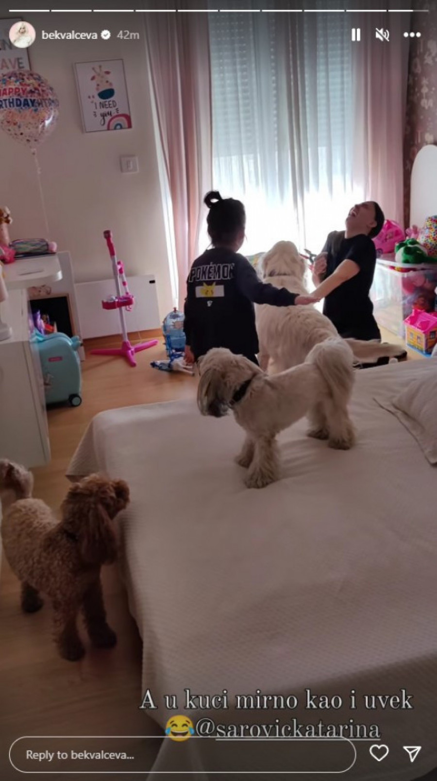 „A u kući mirno kao uvek“, primetila je Nataša i dostavila dokazni materijal: fotografije nasmejane Katje kojoj društvo prave ljubimci. Veselo i maštovito, kako i treba da bude u dečjoj sobi.