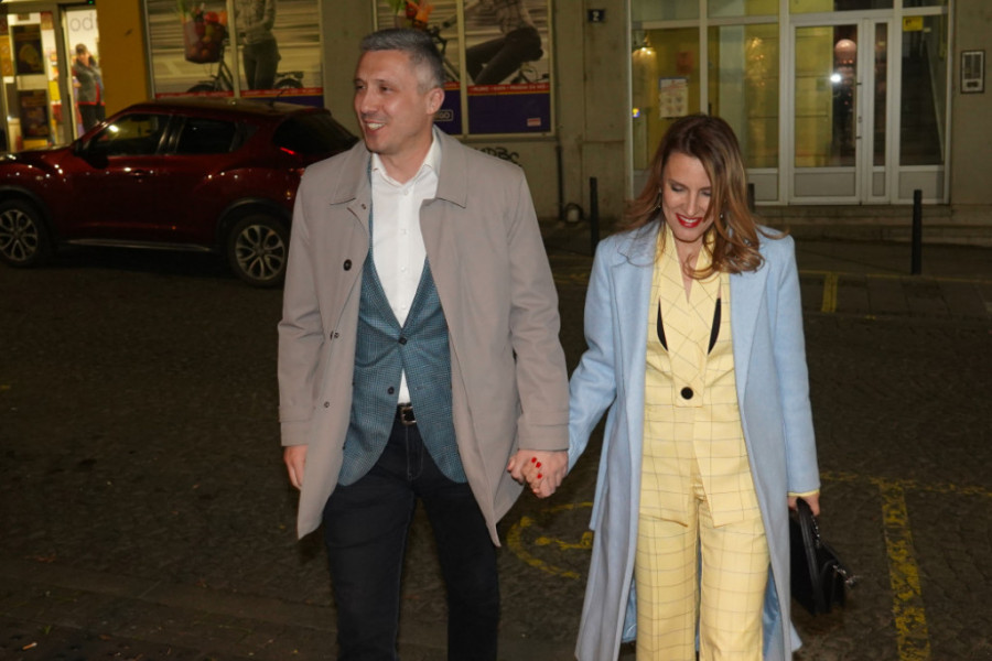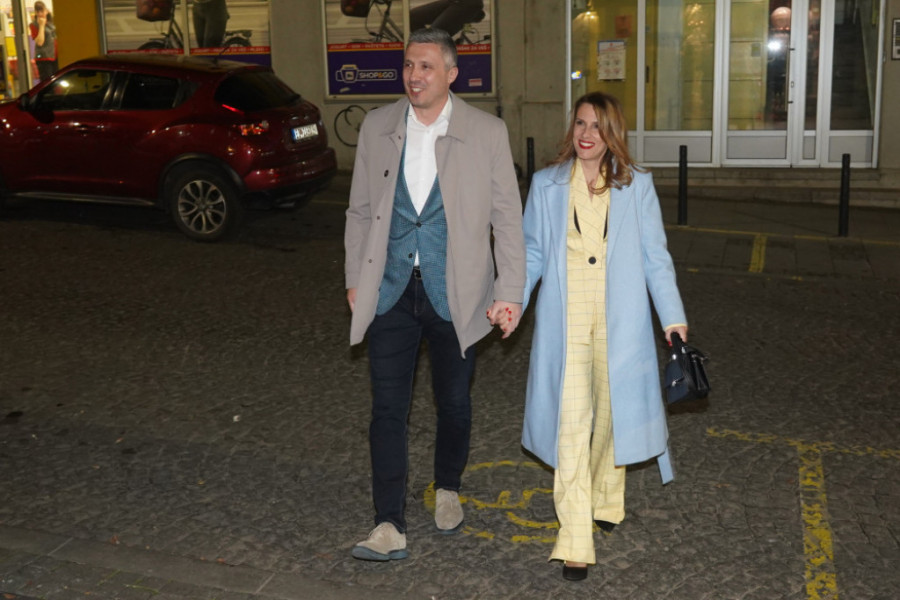 Par je sinoć, osim širokog osmeha, nosio interesantne odevne kombinacije. Supruga Boška Obradovića odlučila se za žuto odelo u kariranom desenu sa neobičnom kragnom, a stajling je upotpunio svetloplavi kaput.
