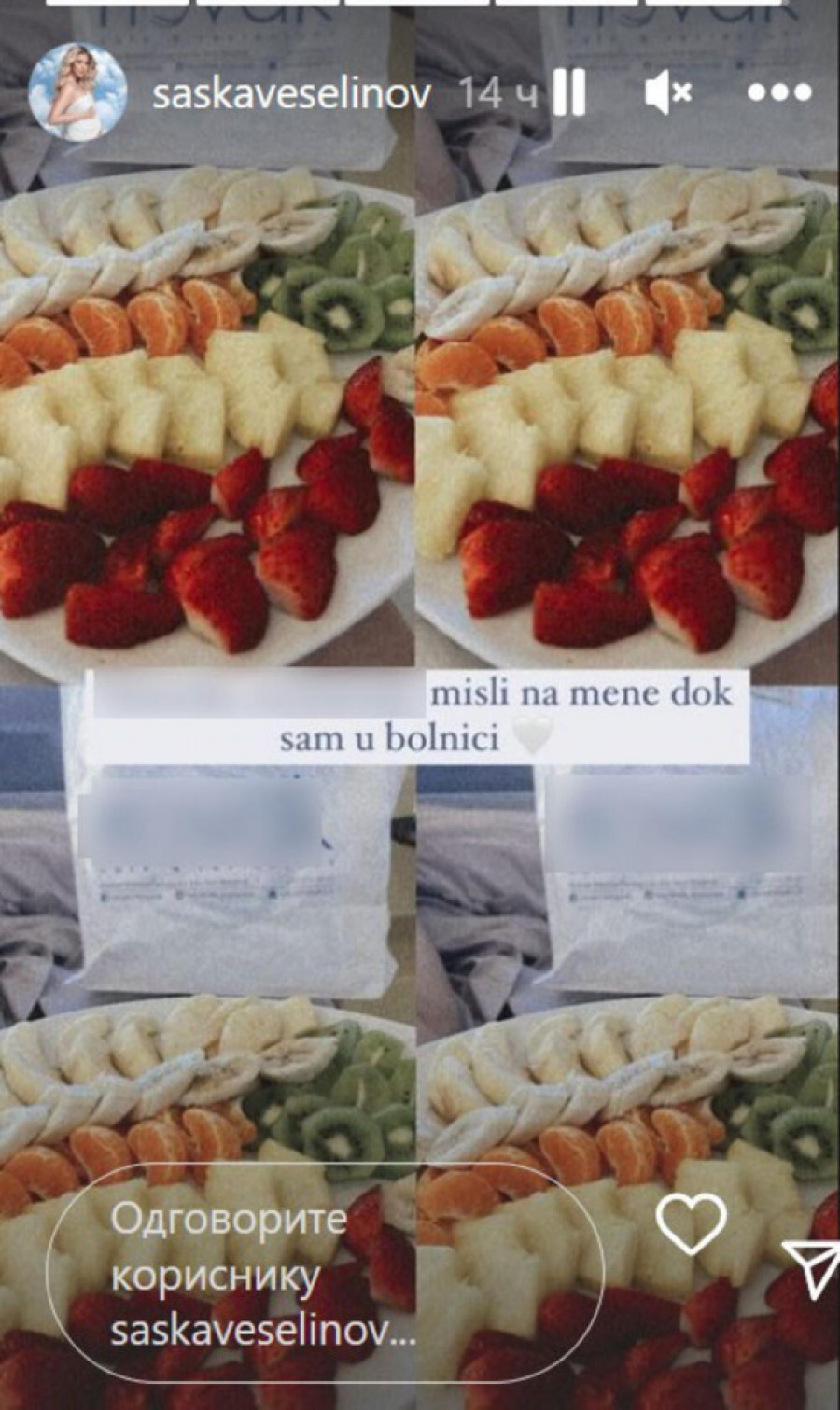 Naime, mama je objavila sliku na kojoj se vidi tanjir pun voća - banana, kivija, ananasa, jagoda - koji su poslali Đokovići iz njihovog restorana, misleći na njeno zdravlje, i kako bi što pre vratila energiju posle porođaja.