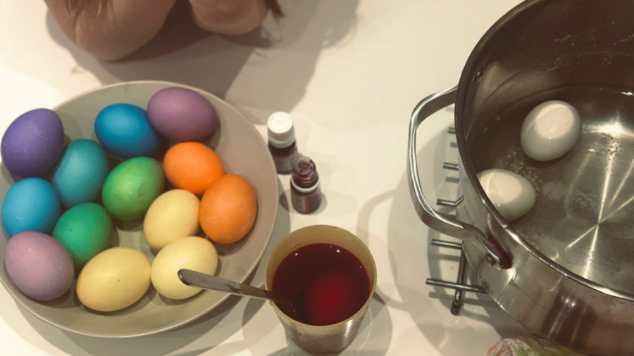 Tamara Dragičević je pri bojenju jaja imala dva vredna asistenta, Stašu i Lazara, a na tanjiru se našao ceo dijapazon boja – od plave, zelene i narandžaste, do uobičajene crvene.