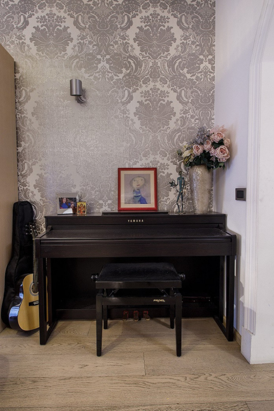 Ono što prvo pada u oči kada se otvore vrata Snežaninog stana su moderne tapete, kao i visoki prozori sa masivnim zavesama.