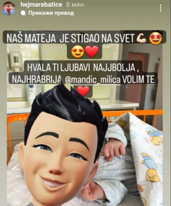 - Naš Mateja stigao na svet. Hvala ti Milice ljubavi, najbolja i najhrabrija. Volim te - poručio je presrećni otac.