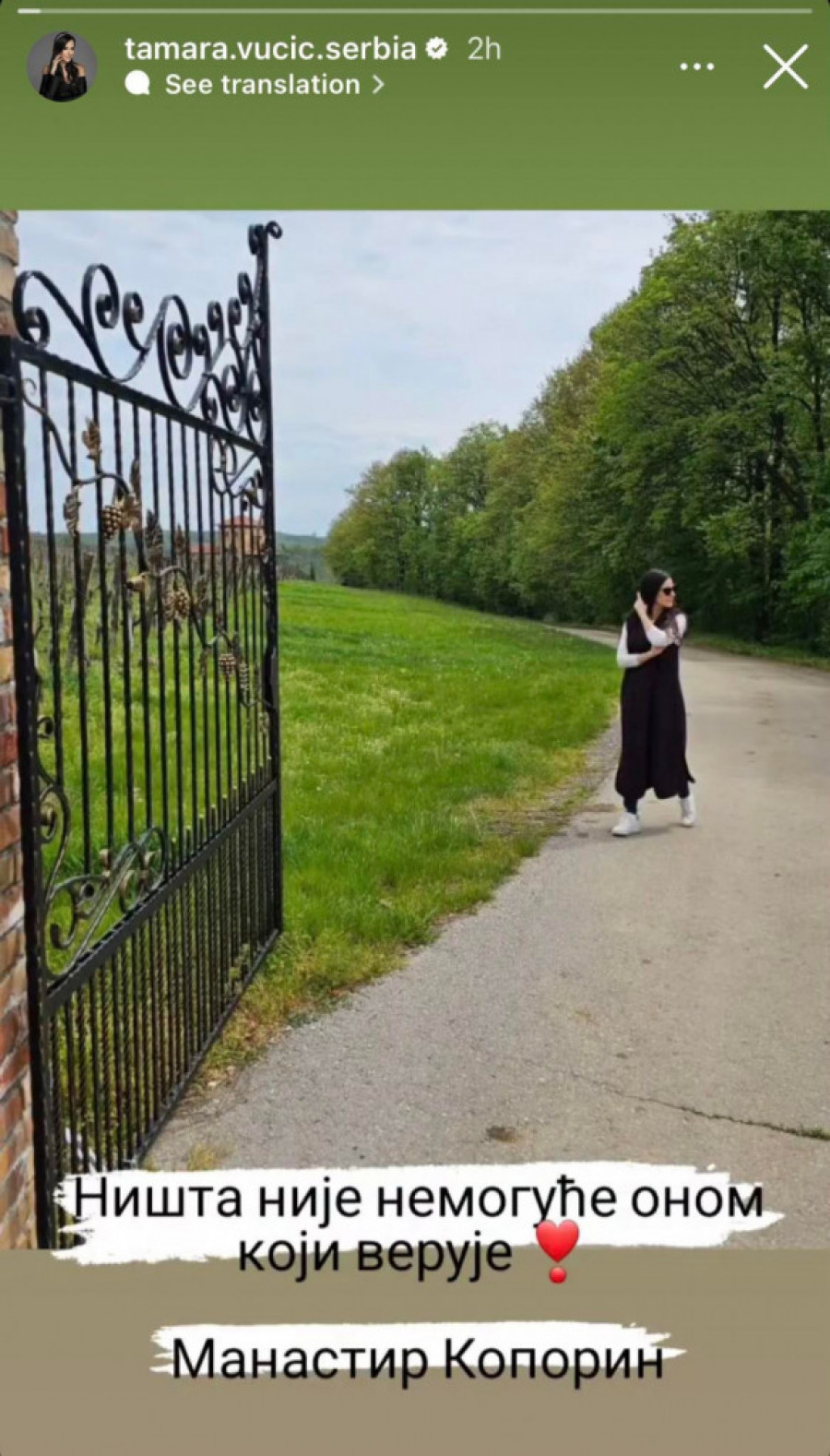Otkako je otvorila profil na Instagramu, Tamara Vučić često deli trenutke iz svog toplog doma, fotografije sa važnih prijema i, naravno, svoje besprekorne autfite koji su uklopljeni sa stilom i ukusom. Prvu damu Srbije viđali smo u Parizu ili Beču, ali pored svetskih metropola ne zaboravlja da obiđe lepote naše države, te je odlučila da posetom manastira Koporin nedaleko Smederevske Palanke pošalje snažnu poruku.
