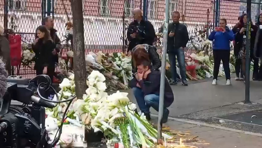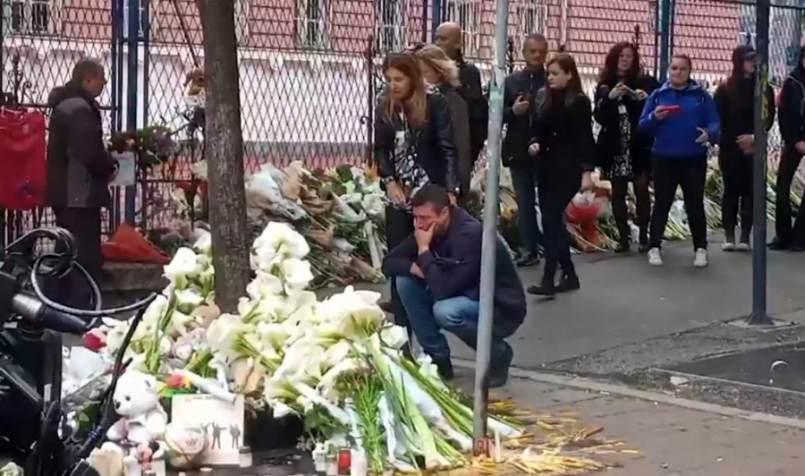 Nemi od bola, roditelji nastradale devojčice danas su došli do škole u kojoj se odigrala nezapamćena tragedija. Nekadašnji odbojkaš kleknuo je pored mesta na kojem građani pale sveće i ostavljaju cveće u znak oproštaja od stradale dece.