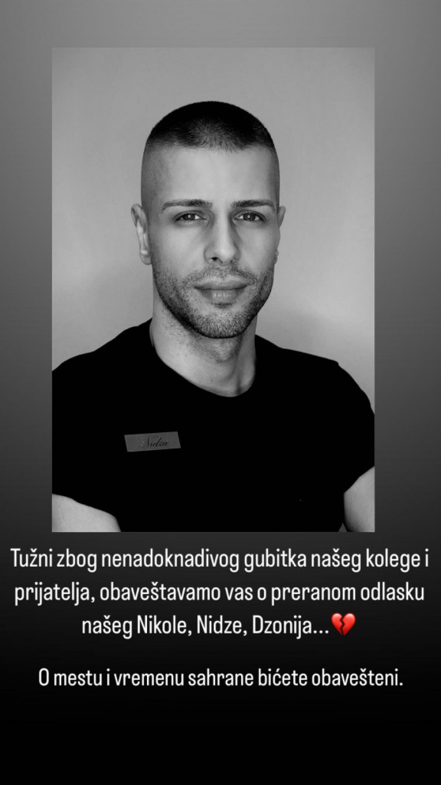 „Tužni zbog nenadoknadivog gubitka našeg kolege i prijatelja, obaveštavamo vas o preranom odlasku našeg Nikole, Nidže, Džonija...