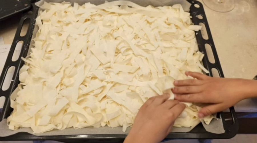 Mali pomoćnik sam je, pod budnim okom majke, otvorio rernu i stavio pleh sa testom da se peče, a simpatični snimak svedoči da je bio i glavni degustator specijaliteta.