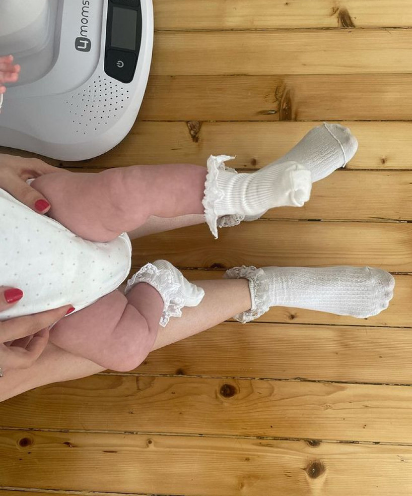 Mada i dalje ne priča o intimi, zvezda brojnih televizijskih serija nije odolela a da ne podeli par kadrova sa ćerkom, a da je reč o devojčici moglo se zaključiti po belim čipkanim čarapicama.