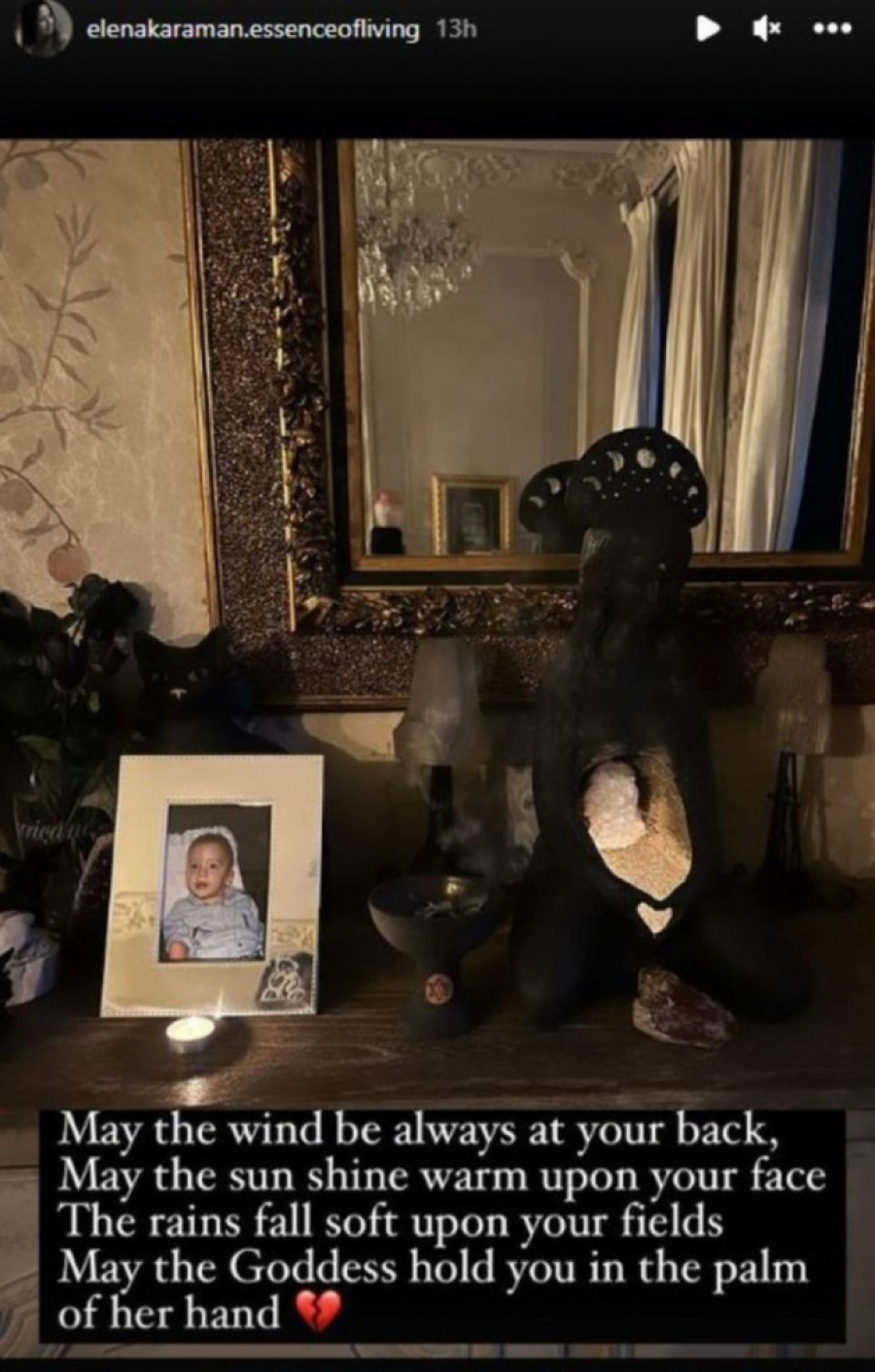 - Neka ti vetar uvek širi krila, neka ti sunce isijava toplotu na lice, neka ti kiša pada nežno po poljima, neka te boginja drži u svojoj ruci - napisala je Elena, dok se u pozadini, u ramu, nalazila fotografija njenog sina i upaljena svećica.