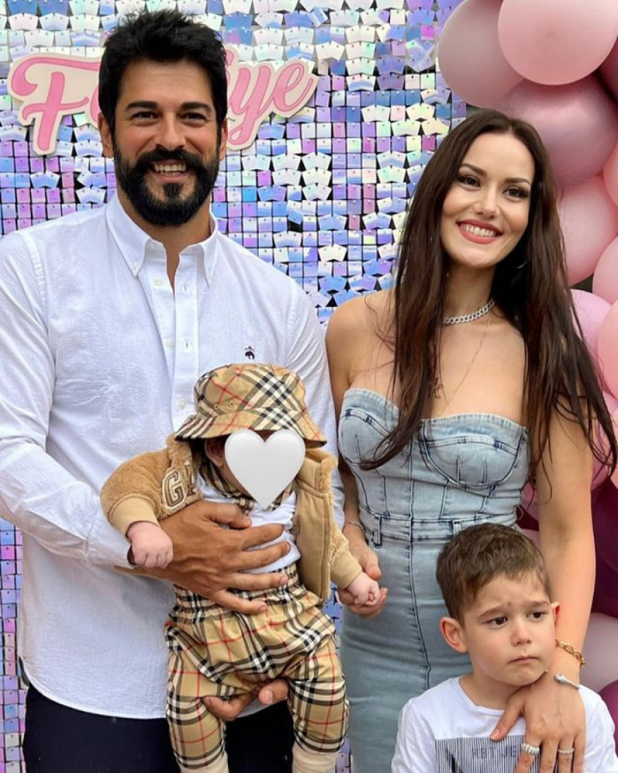 Slavljenica je tog dana blistala u haljini od svetlog teksasa otvorenih ramena. Duboki izrez otkrivao je duge noge, a i pogled na dekolte je bio slobodan. I ona i Burak odlučili su se za opušten, dnevni stajling, ali je zato mlađi sin Kerem bio apsolutno u trendu – nosio je presladak „Burberry“ komplet, upotpunjen šeširićem sa istim desenom, zaštitnim znakom čuvene britanske kuće.