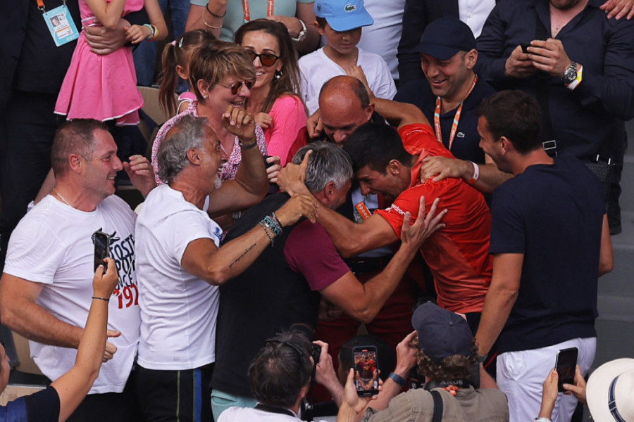 U finalu Rolan Garosa Novaka su iz svečane lože bodrili oni koje najviše voli - roditelji, supruga i deca, a nakon spektakularnog trijumfa naš as im je pohitao u zagrljaj, kako bi zajedno uživali u trenucima neizmerene sreće.