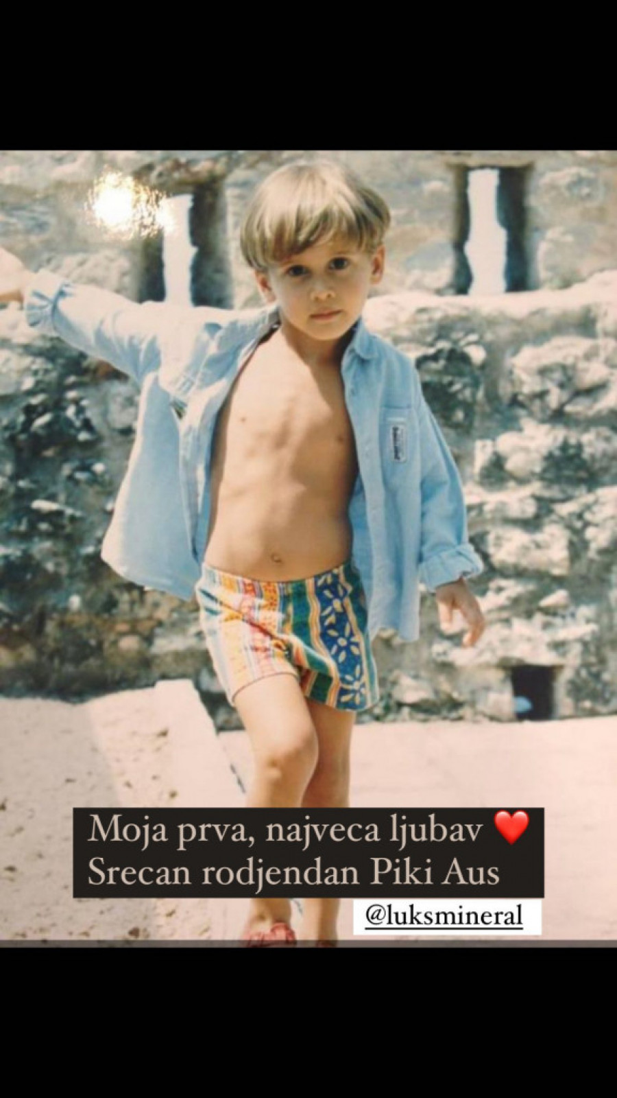 „Srećan rođendan mojoj najstarijoj bebi! Volim te! Moja prva i najveća ljubav“, napisala je pored dve slike, jednu iz njegovog detinjstva, drugu zajedničku, verovatno nedavno snimljenu. Otkrila je i kako zove najstarijeg sina – Piki Aus.