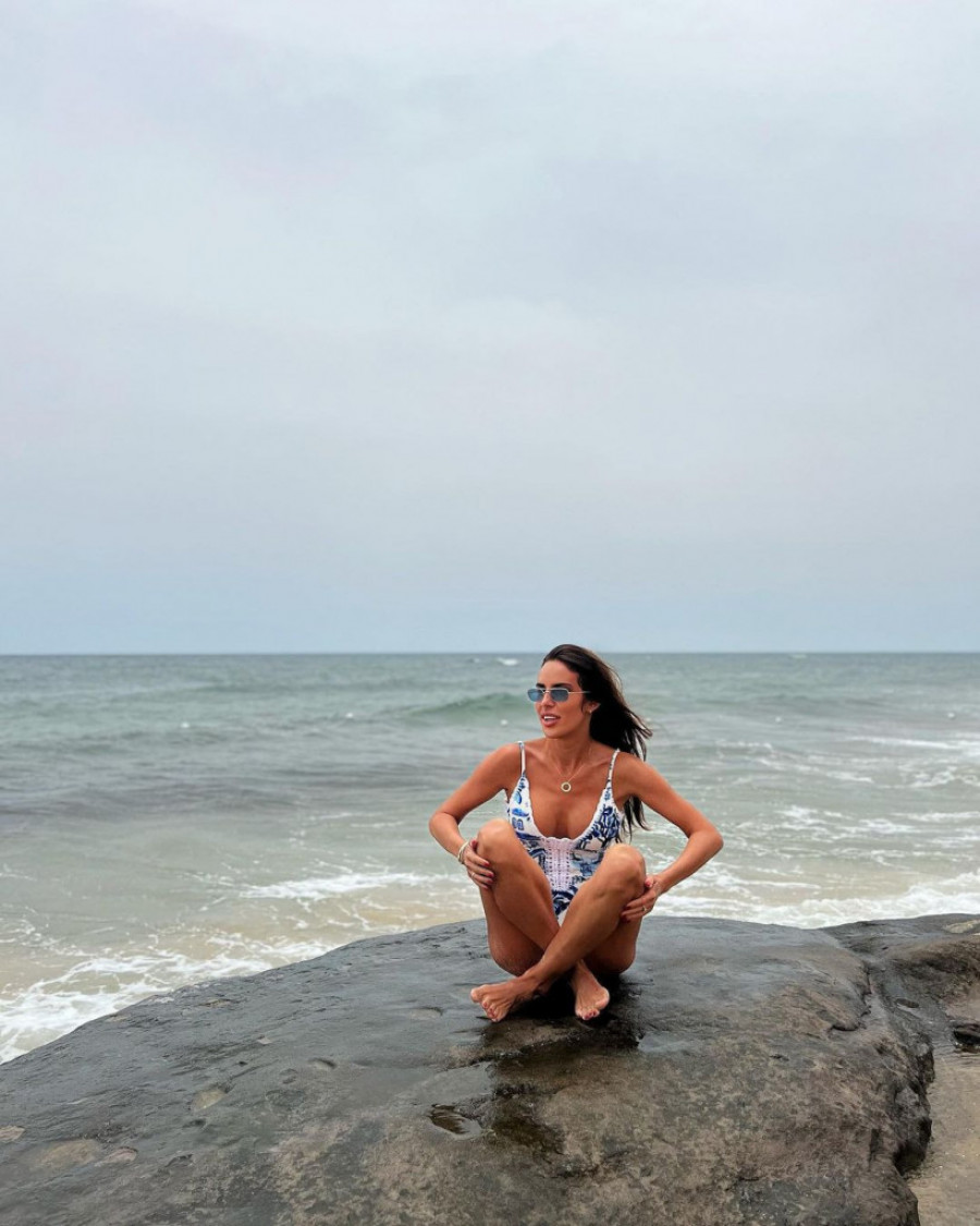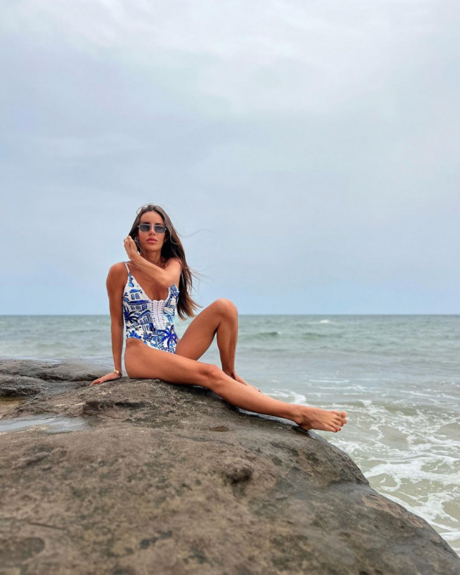 Mada se treći put porodila pre manje od godinu dana, Kristina Mitrović pleni atraktivnim izgledom, a lepota njenog perfektno izvajanog tela došla je do punog izražaja u jednodelnom plavo-belom kupaćem kostimu koji je izabrala za ovu sezonu.