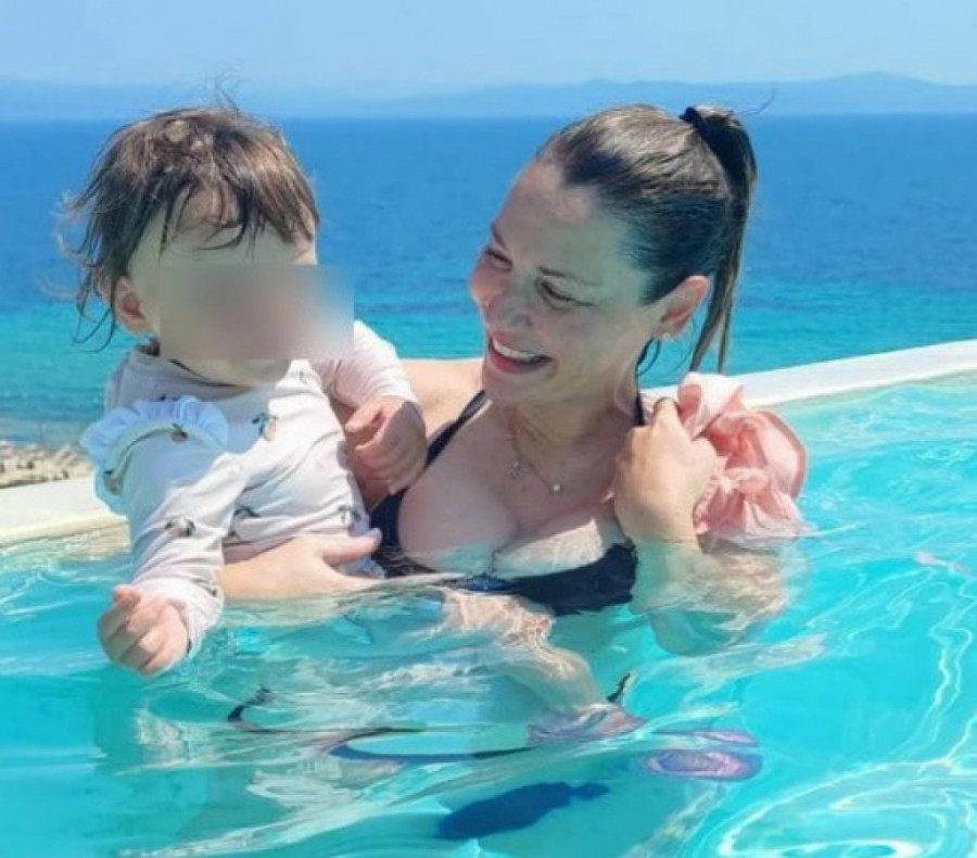 Pozirala je u kupaćem kostimu, dok se kupala u bazenu sa naslednicom, a iza njih je bilo more.