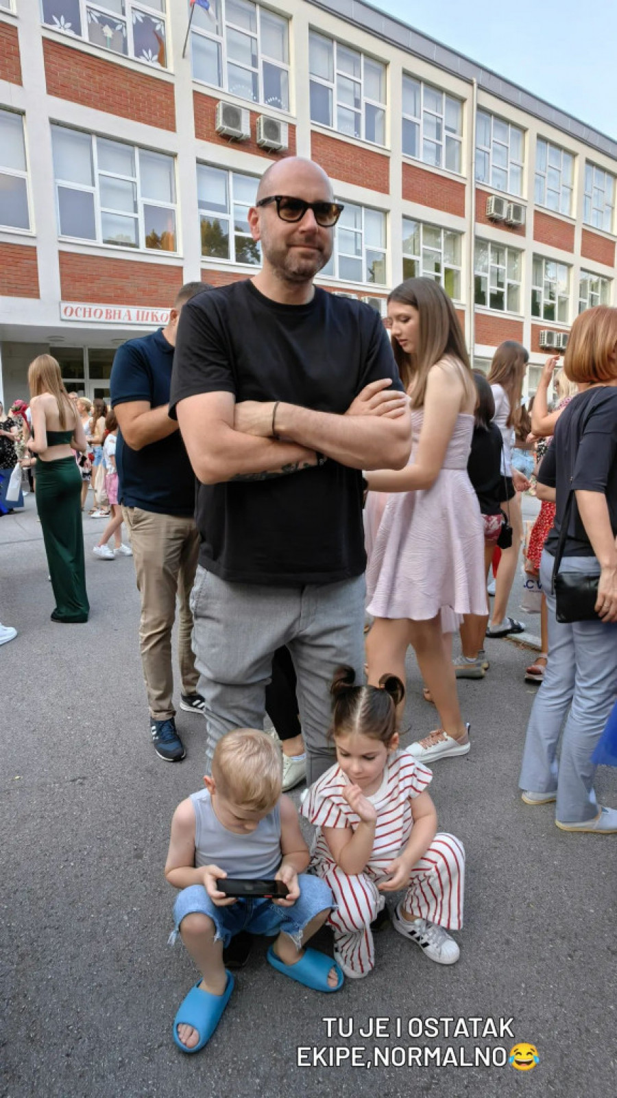 „Da li su ovo naša deca, Isuse?...“, zapitala se Nataša Bekvalac uz album fotografija koji je objavila na Instagramu. Ispred škole su se našli i najmlađi članovi porodice, Katja i Noa, koje je čuvao Kristinin bivši suprug Ivo Martinović.