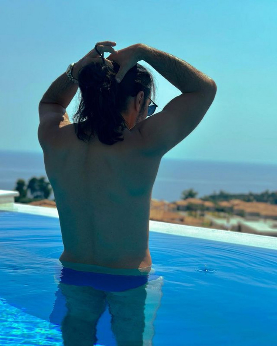 Pripadnice lepšeg pola nisu izdržale da ne prokomentarišu Veljkovu fotografiju iz bazena. Doduše, mogu da vide samo gornji deo tela jer je drugi u vodi. Dok nonšalantno vezuje kosu u rep ispred supruga Verice Rakočević puca pogled na plavi horizont.