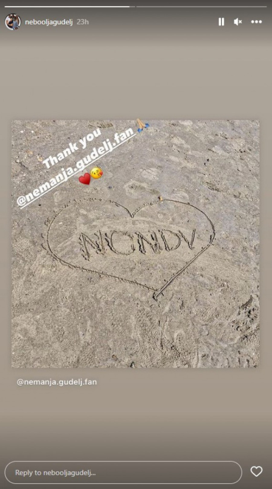 Olivera Gudelj ponovo je usijala Instagram objavom u kojoj su mnogi potražili skriveno značenje. Naime, na profilu „nebooljagudelj“ koji, po svemu sudeći, deli sa suprugom Nebojšom, objavila sliku inicijala NONDV u pesku, uokvirenih srcem.