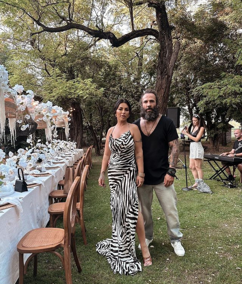 „Tata napunio 40“, napisala je popularna pevačica uz fotografiju sa suprugom. Za ovu posebnu priliku Seka je obukla dugačku haljinu sa bretelama zebrastog desena, dok se njen suprug odlučio za „casual“, sportsku varijantu.
